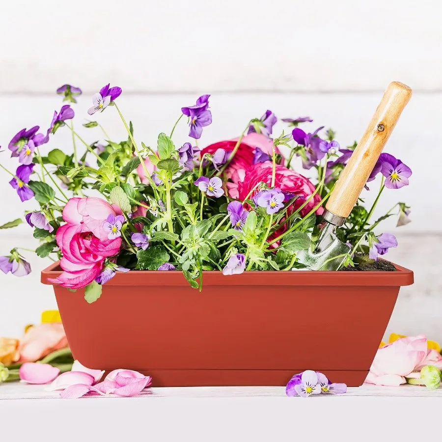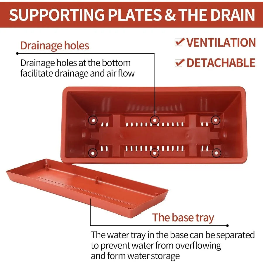 7Pack Rectangular Plastic Window Box Planters 17 Inches Tall with Saucers for Indoor and Outdoor Gardens Ideal for Vegetables F